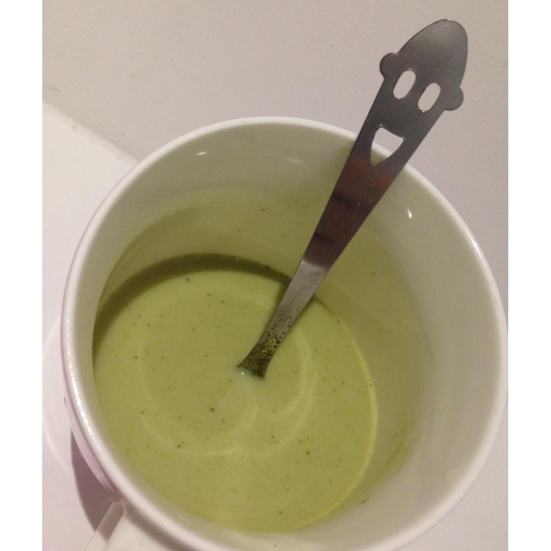 低脂杏仁奶+抹茶粉+炼乳!喝出抹茶奶盖的味道!很赞,抹茶的微涩味中和了甜味,香而不腻~
