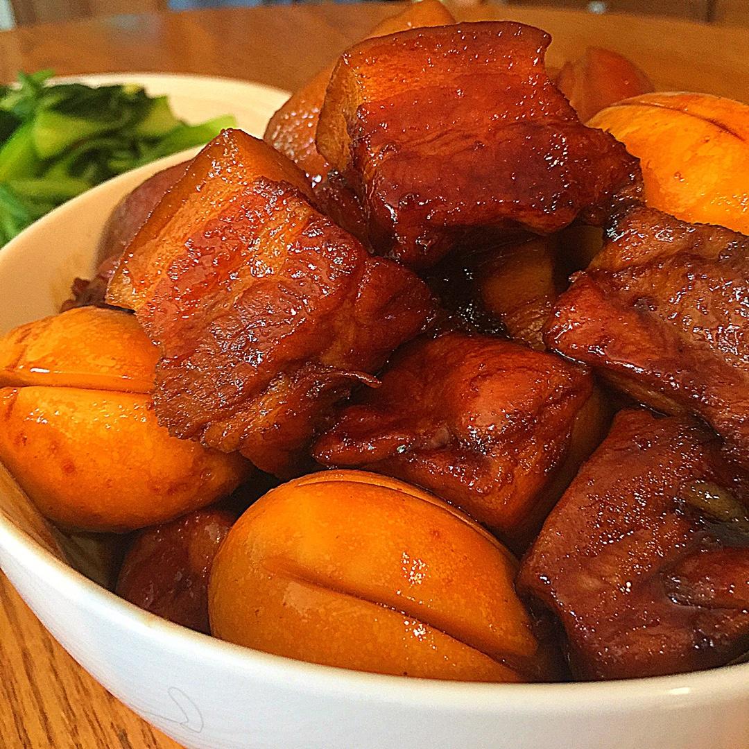 每周家里的两位都要吃一次红烧肉或者红烧大排配炒青菜,不喜欢炒糖色,像这样最后放冰糖也很好的。因为前段时间家里一直买的黄晶...