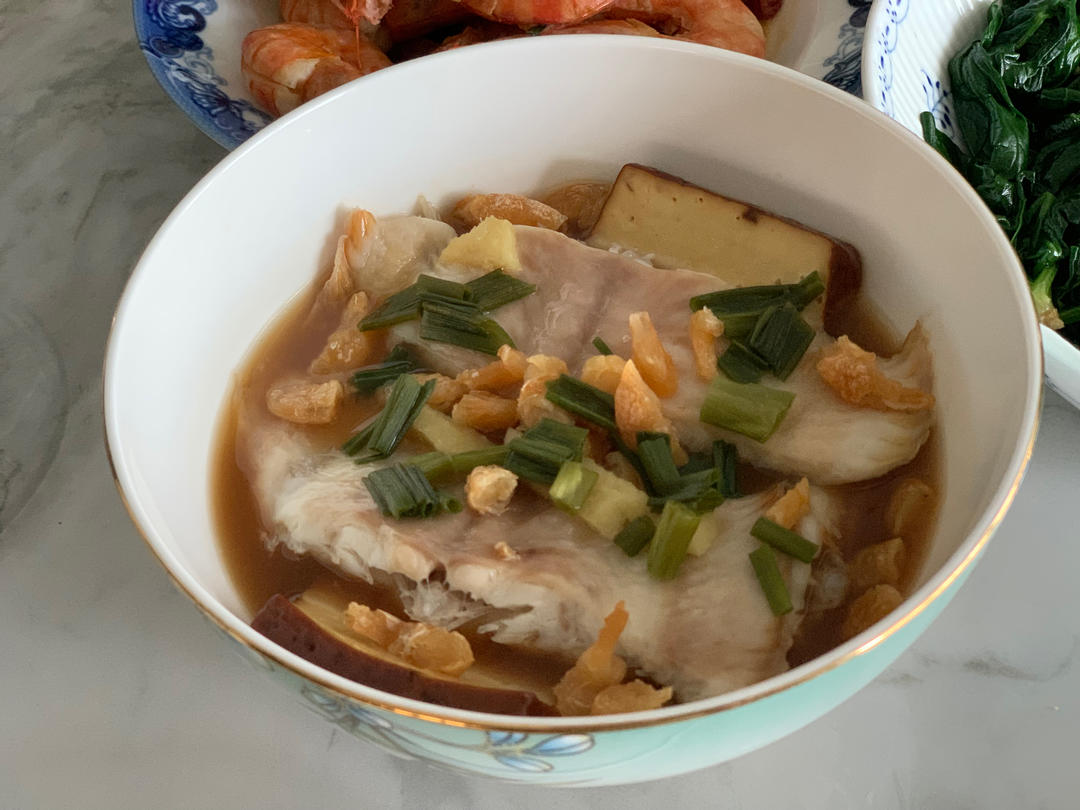 简简单单的午餐,用家里现成的食材:比目鱼+开洋+龙游干,清蒸了一下,很鲜;筒骨+白萝卜,煲了道汤,温暖了冬日里的寒胃;菠...