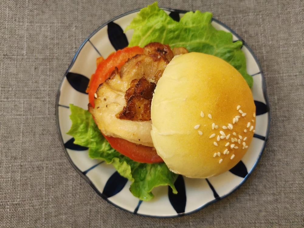 照烧鸡腿汉堡包🍔波兰种做的面包真的好,超级软~