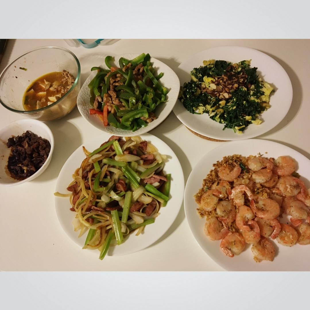 空气炸锅真是上班族的福音,40分钟作出了4道菜,其中两道(青椒肉丝和椒盐虾)借助了空气炸锅。孩子特别喜欢椒盐虾。