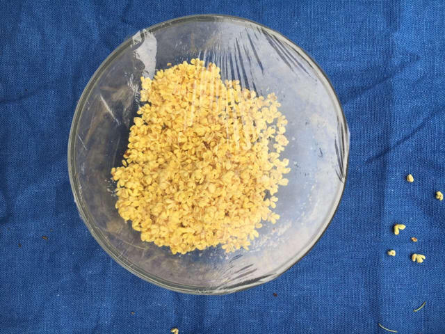 今天摘的新鲜桂花,筛后515g。准备做桂花酒用,话说摘桂花真是个力气活啊!