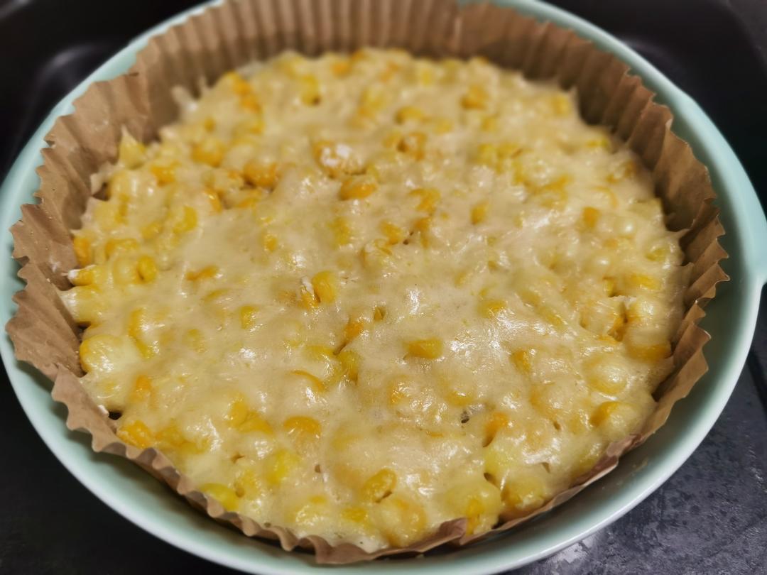 我用的一罐454克的甜玉米,加了35克淀粉,一小勺盐,一丢丢罗勒碎,车达芝士和肉松,还蛮好吃的