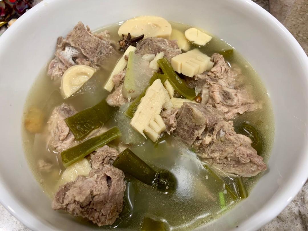 海带龙骨汤~~ 用铸铁锅慢炖 还加了冬瓜笋尖 好吃哟😎