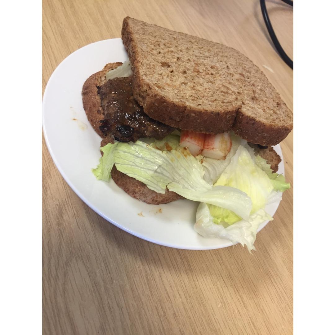 早安,牛肉蟹肉棒三明治