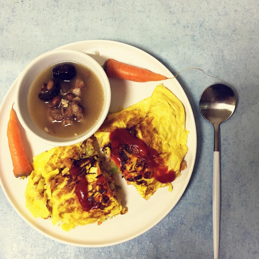 #早餐•2017年4月26日##被吃掉的蔬菜宝宝##大米作物#四颗春桃一颗鸡蛋+车仔面