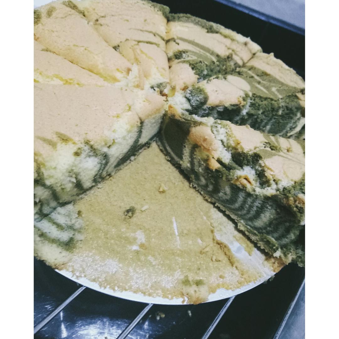 #晚餐•2017年4月11日##大米作物#第一次做戚风,做了两色的出来回缩了扁扁的哈哈哈,但是味道还是可以的嘿嘿