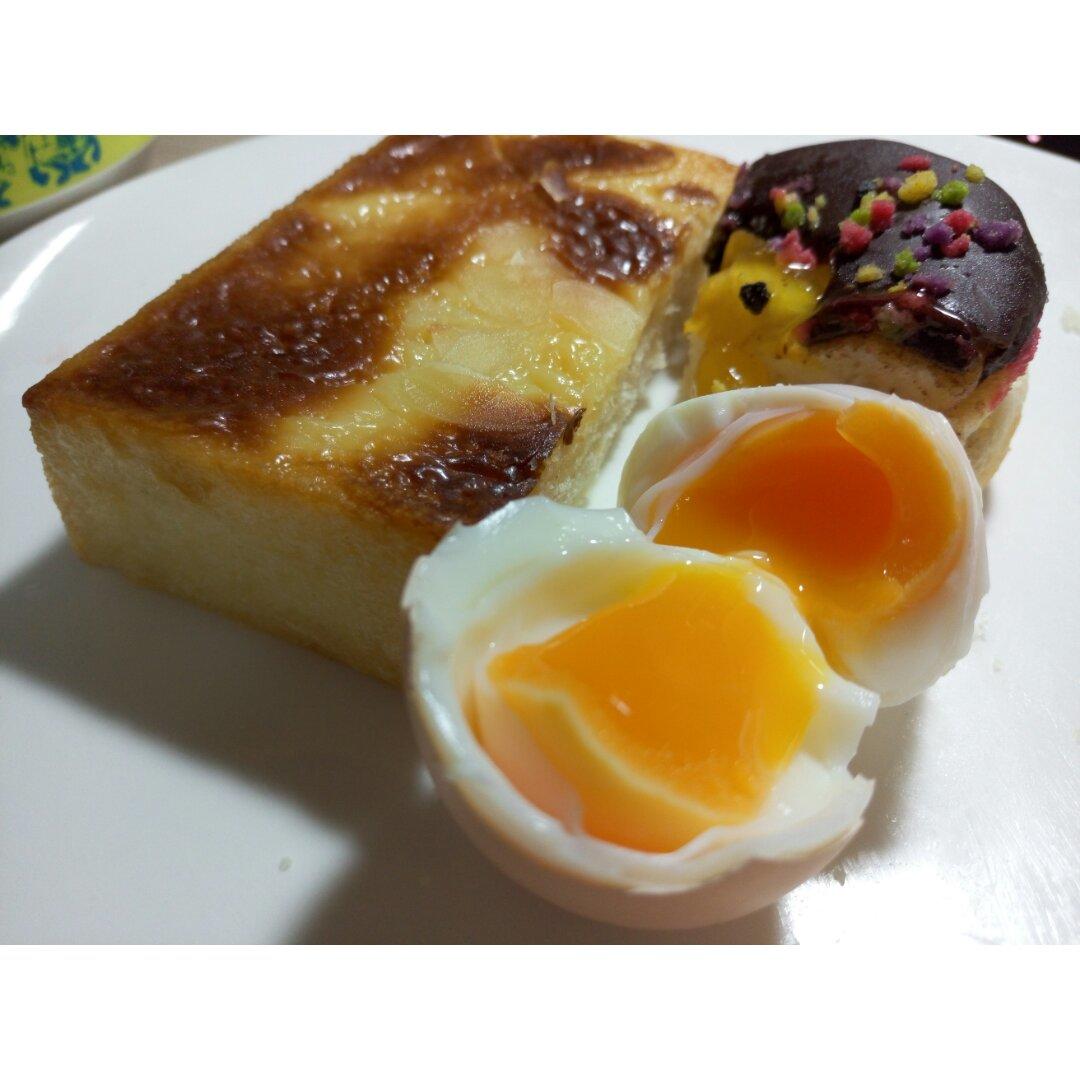 婷婷舍友贡献的岩板烧,巧克力甜甜圈,自己煮的流心糖心蛋,简直 完美...