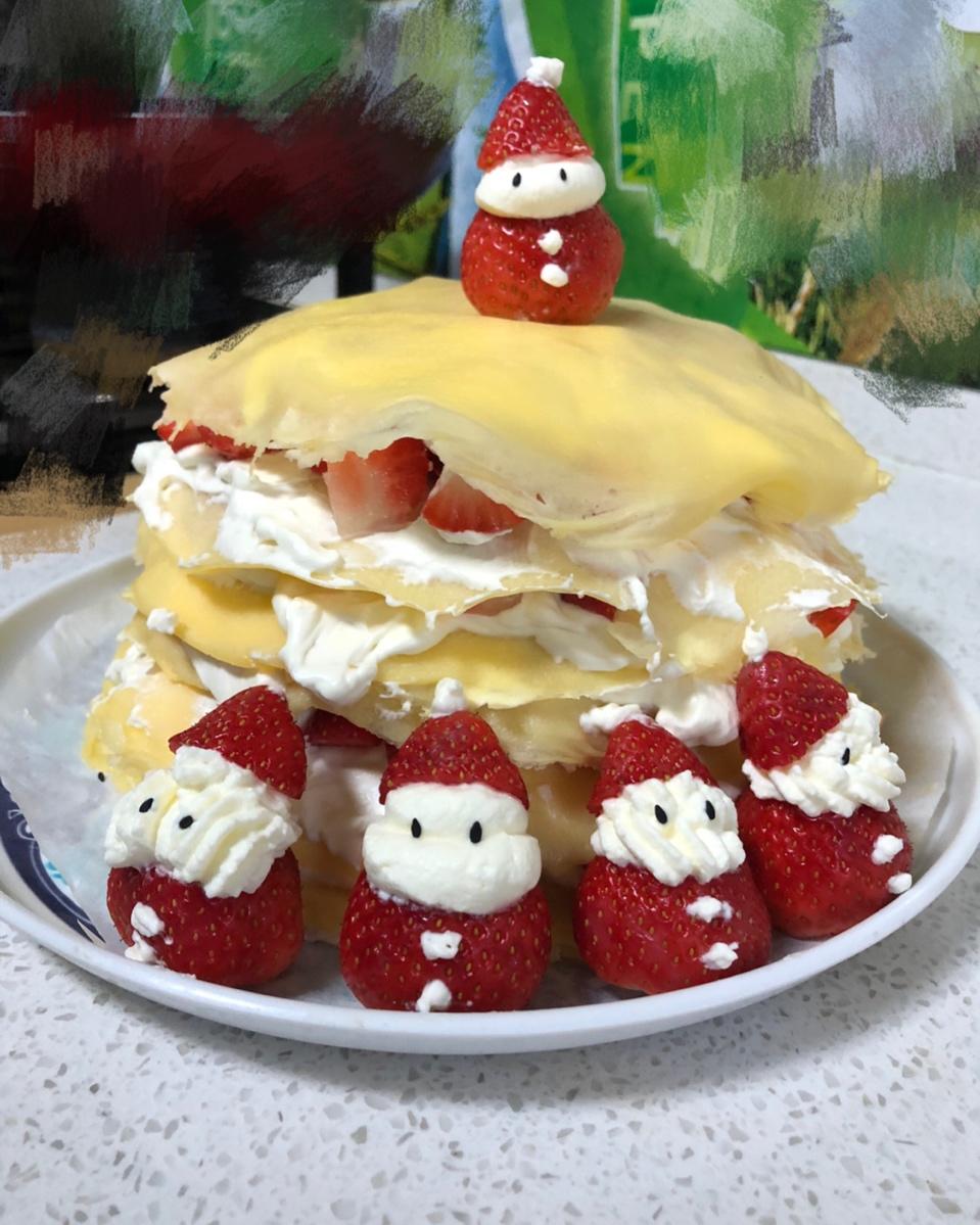 草莓圣诞小可爱千层哦! 内馅有芒果和草莓哦 !