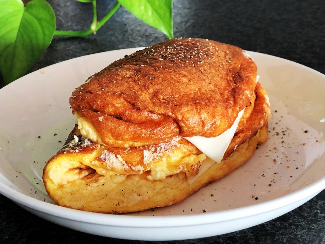 芝士蛋厚松饼,没想到咸口更好吃呀😋
