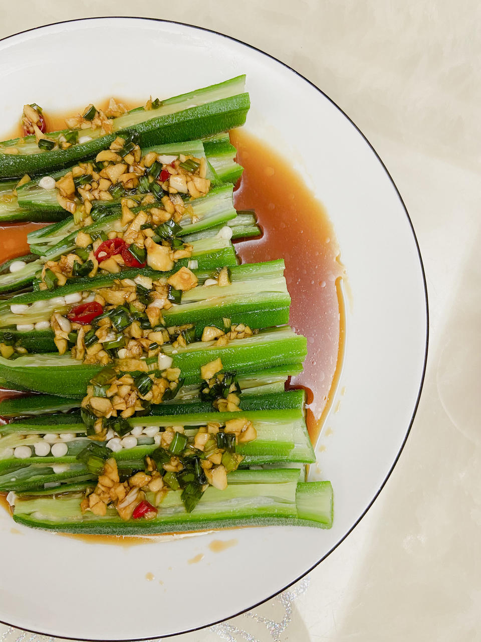 今天学做:蒜香秋葵呀~