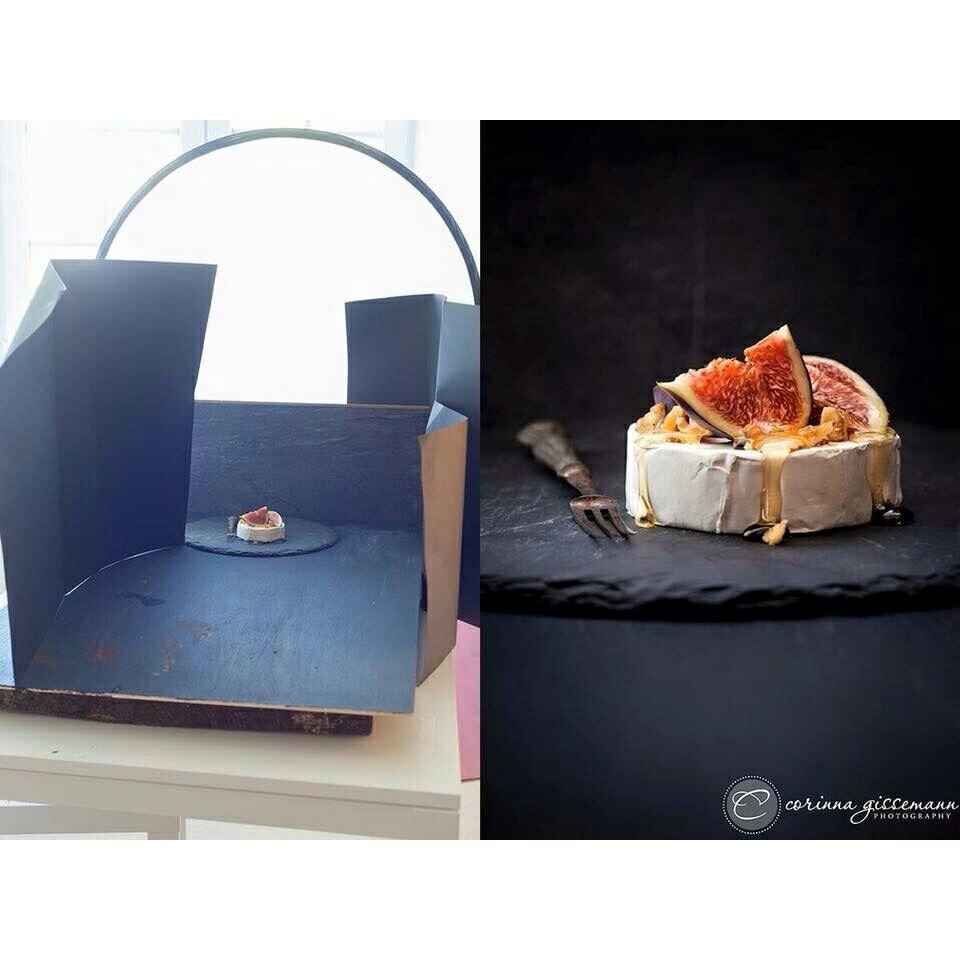 分享一些食物摄影布景布光的图。