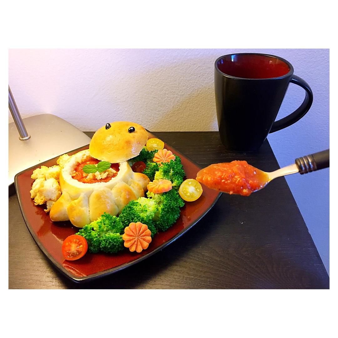 最近烤面包简直上瘾 又给自己烤了一个萌萌哒小章鱼面包🙆🏻🙆🏻