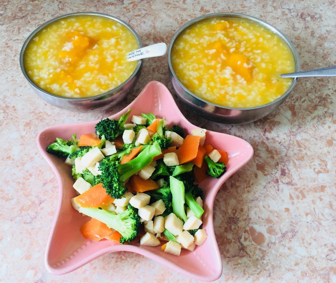 红薯粥➕西兰花红萝卜炒鸡胸肉!
