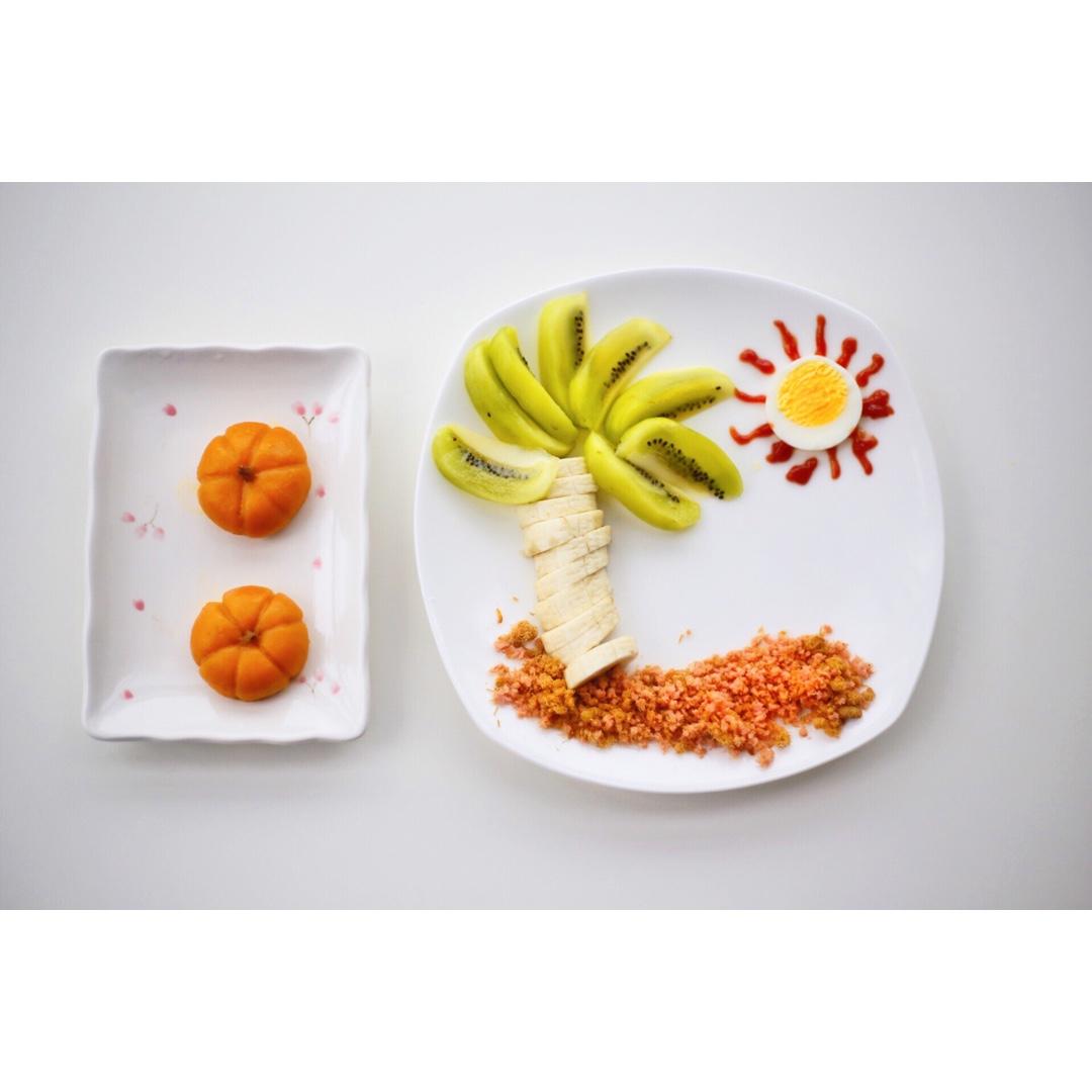 南瓜馅饼+水果鸡蛋拼盘