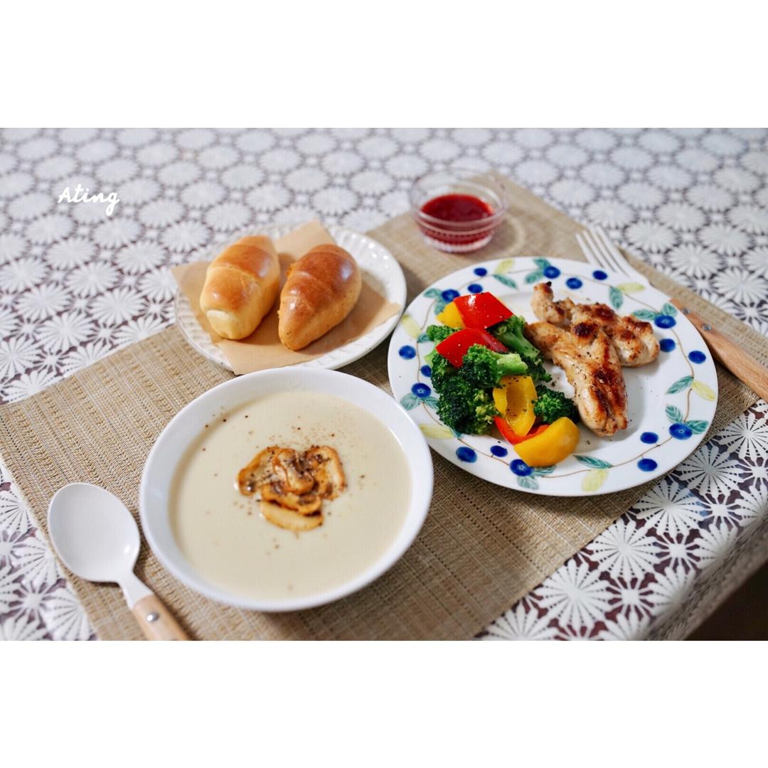 今天下雨降温,去到菜市场看到新鲜的口蘑,我就知道我要给自己做一份热乎乎的蘑菇浓汤🍲...