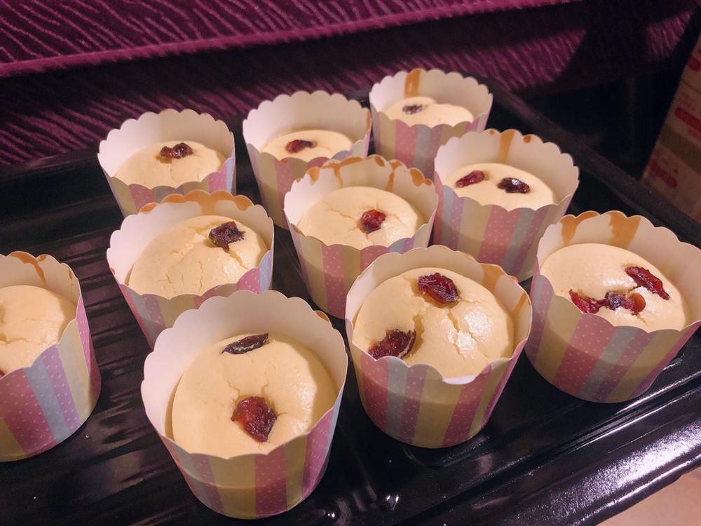 蛋白没有打发好,做出来口感有点像蒸蛋糕,但是味道也不错,刚做出来就偷吃一个,味道也不错,自己加了香草精,哈哈~