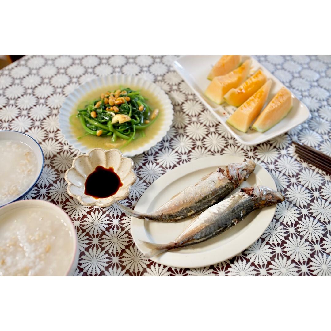 烫青菜,煎菜脯鸡蛋,荷兰薏米红豆粥