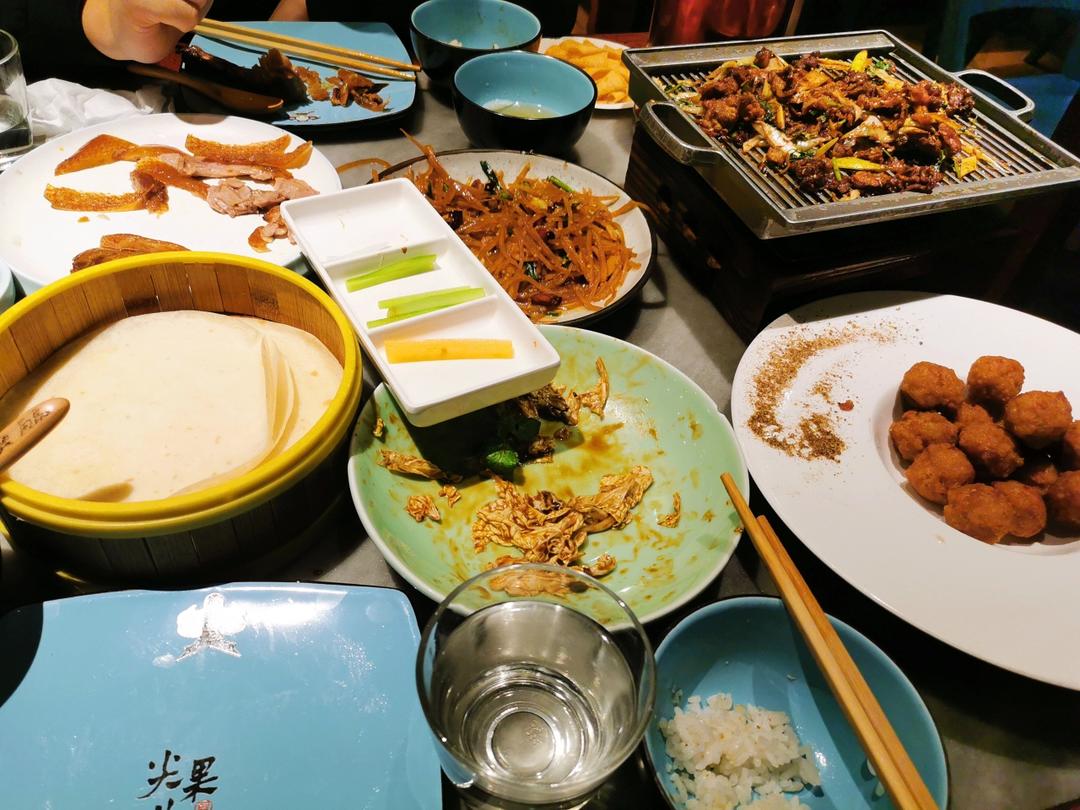 昨日晚餐 第一次吃北京菜 北京烤鸭 乾隆白菜 干炸排骨丸子 小吊梨汤 贝勒爷烤肉 油渣土豆丝