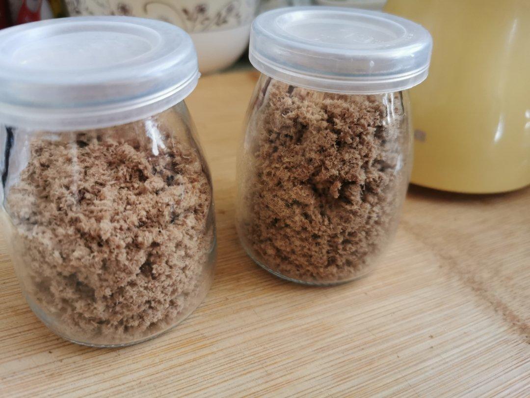 第一次做三文鱼松,火候不到位,感觉炒焦了。