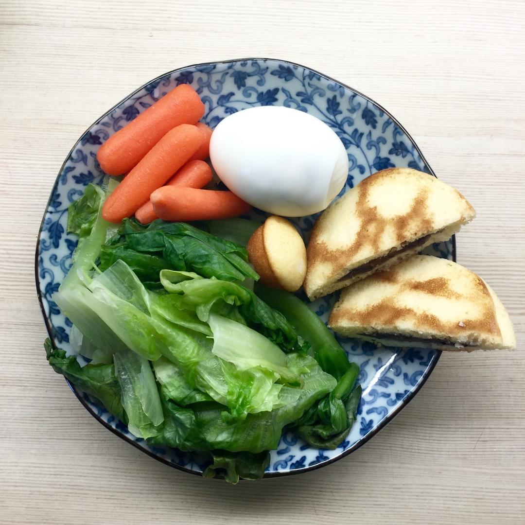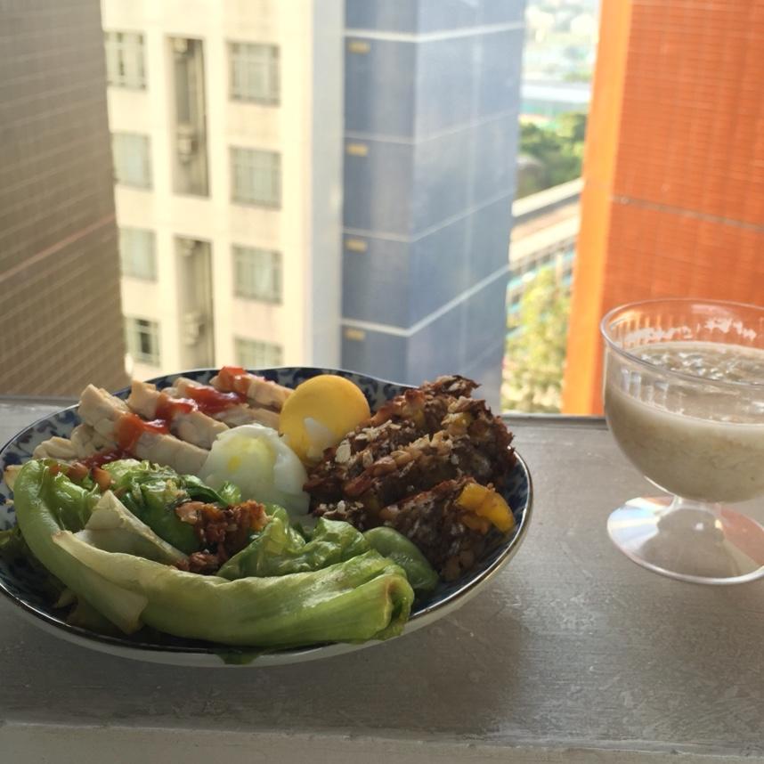 天贝+蛋+生菜+燕麦+香蕉谷物蛋糕外加腰果碎