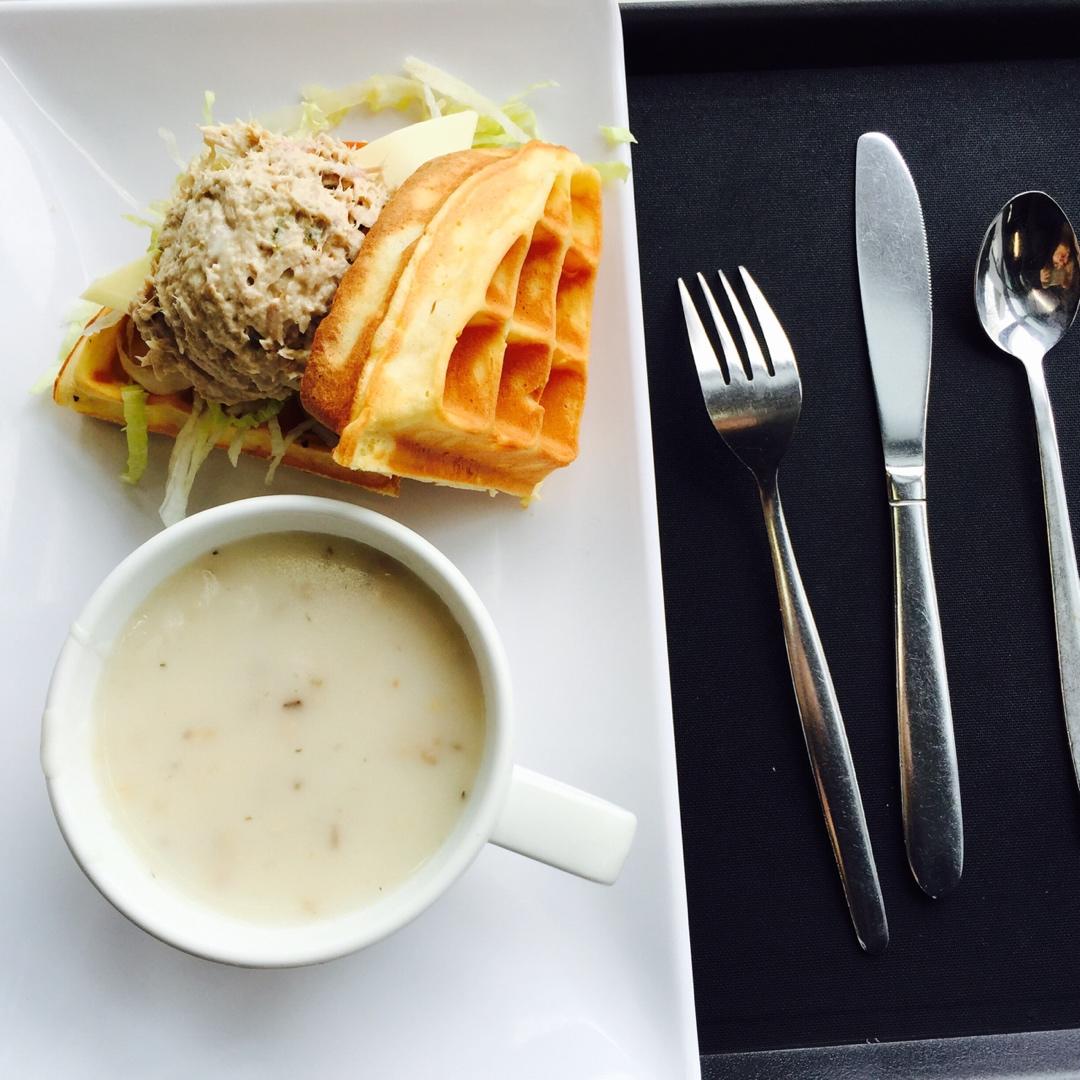 咸牛肉沙拉配窝夫跟蘑菇汤~