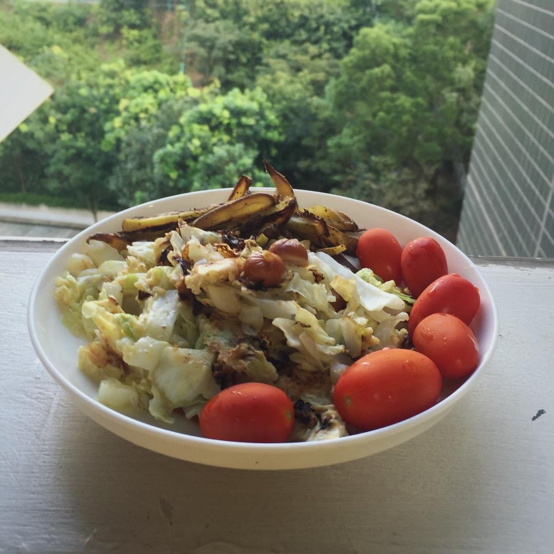 卷心菜+小香肠+蛋+烤薯...