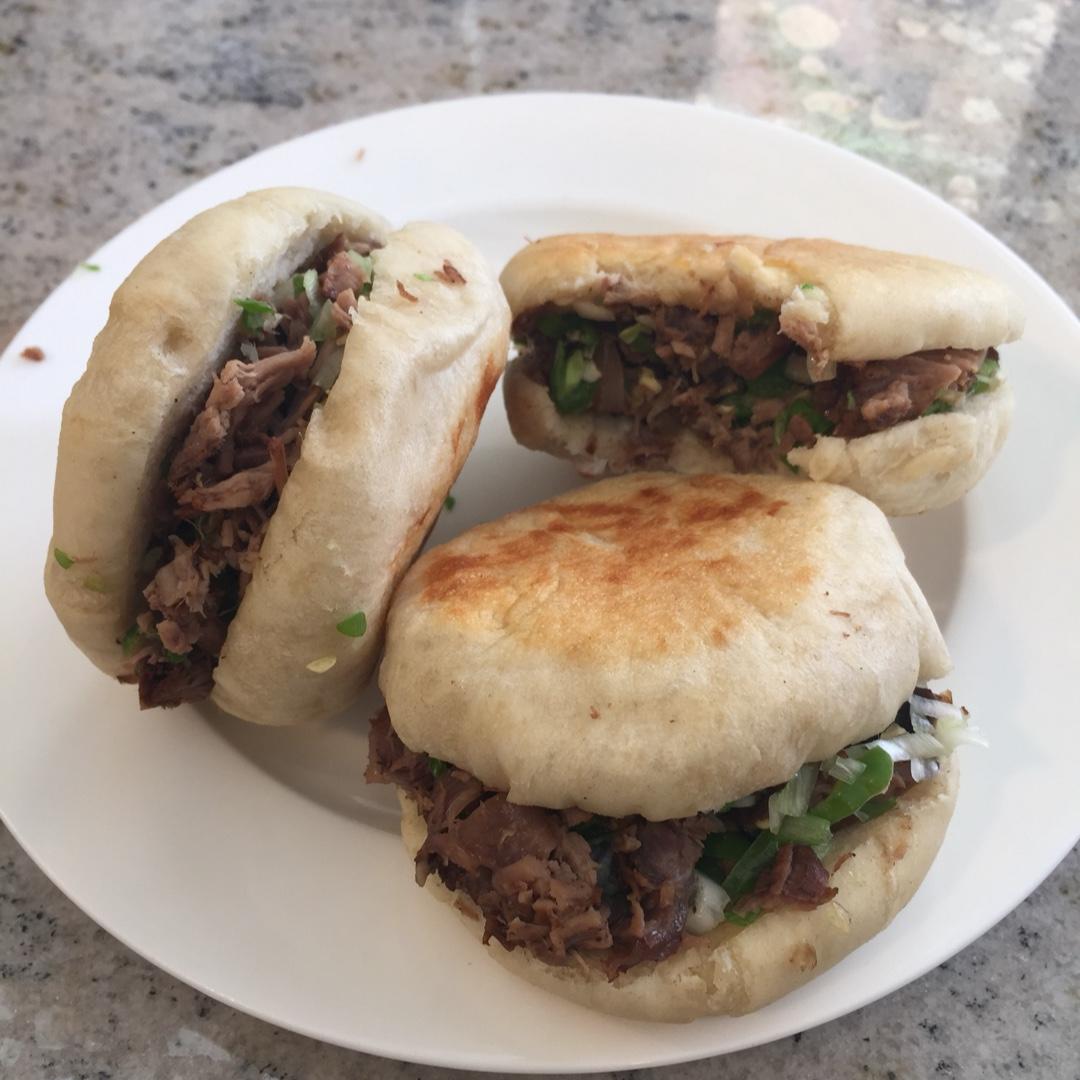 蒸馒头时多出来两个没法放蒸锅里了,就手给烙了发面饼,中午饭就吃了肉夹馍,菜地里现摘两个尖椒,切吧切吧,切点炖牛肉,齐活!...