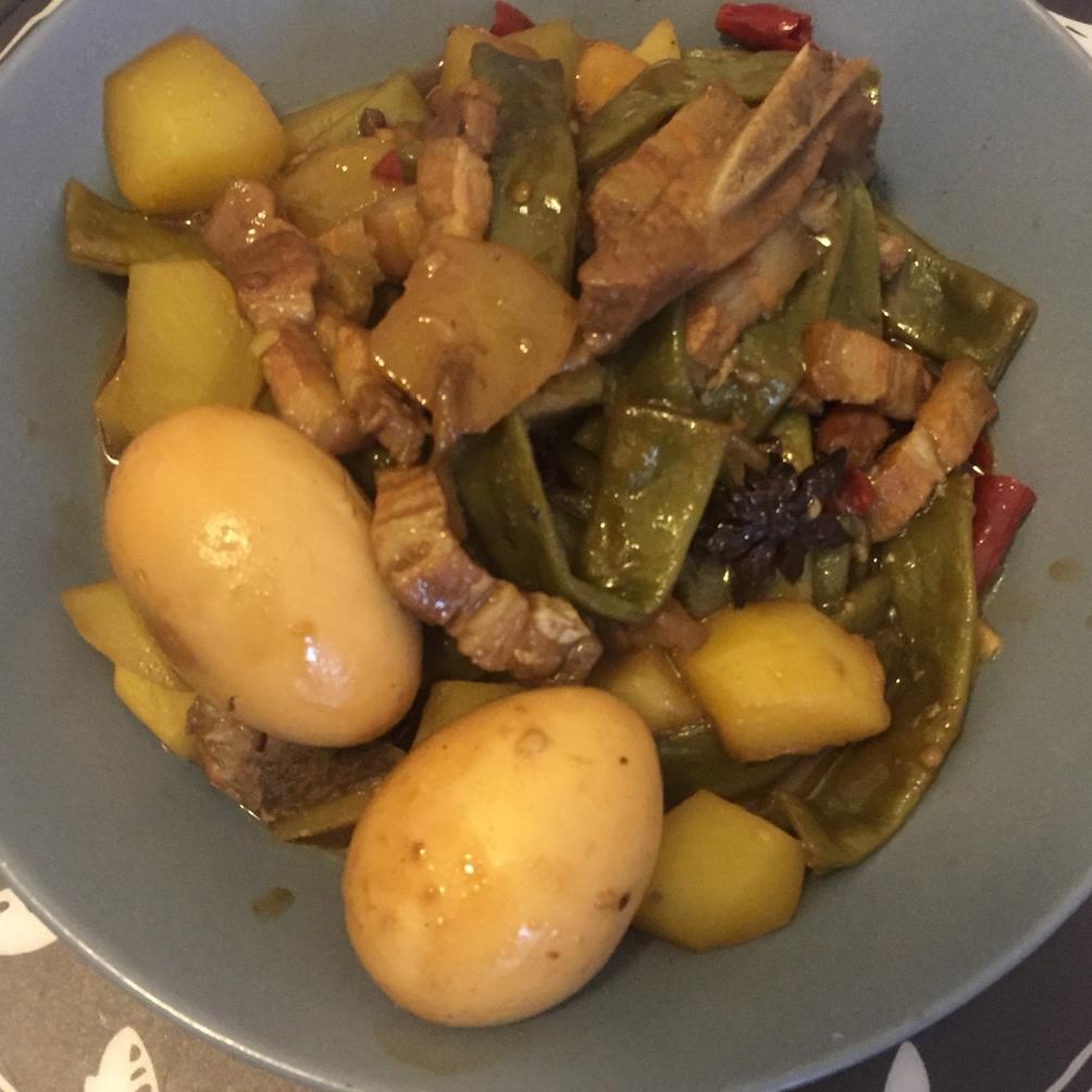 我爸说我买的这个叫下五花,我昨晚想趁着凉好切,结果每刀都切不到底儿,最后切出两根排骨~拿酒和生抽腌了,早上用青椒和鸡蛋炒...