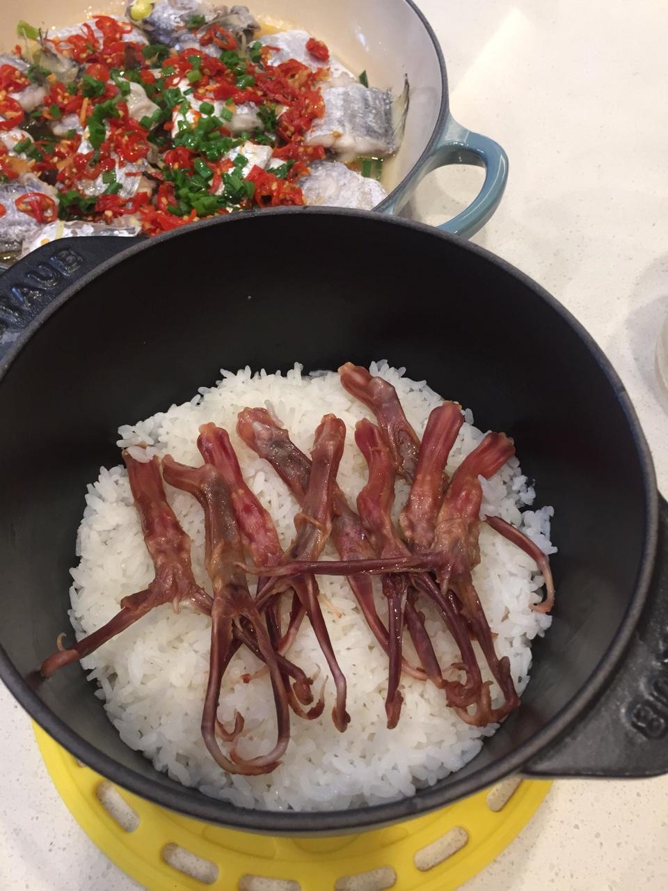 煮饭的时候扔几条鸭舌,白酒焗带鱼、丝瓜毛豆、青椒番茄烘蛋,朋友自己种的番茄就是好吃。 #午餐•2017年6...