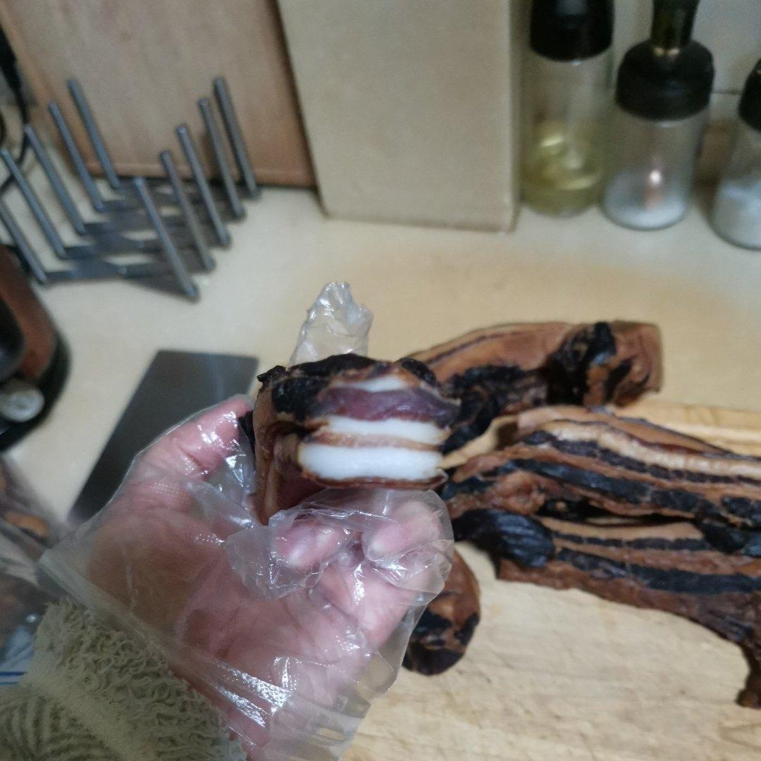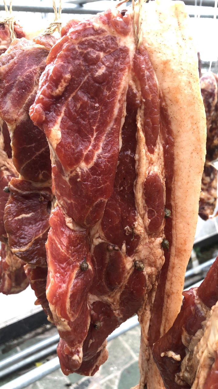 腌肉好几天,晾了好几天,最后熏了一下,不过油滴到下面的糖里了,熏的味儿淡了。好喜欢半透明的这种腊肉,真是入口...