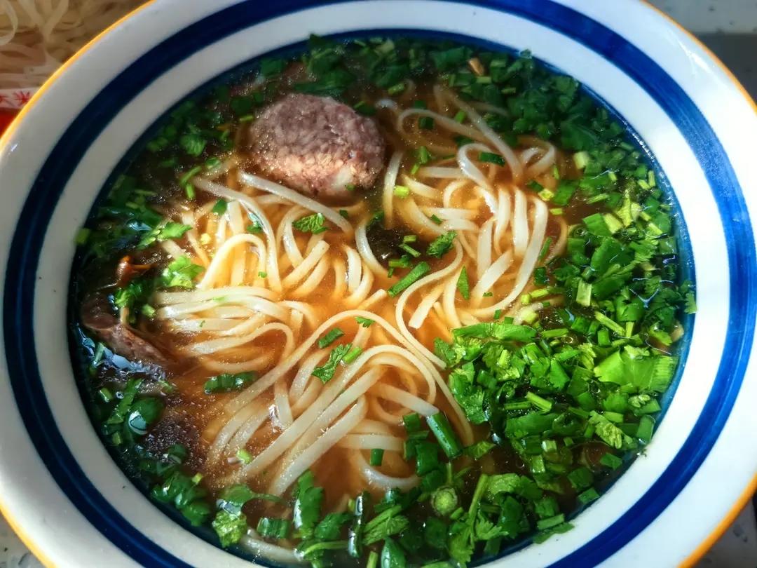 阳光午餐,煮碗葱油河粉,加两片自制黑胡椒肠,蛮好的。