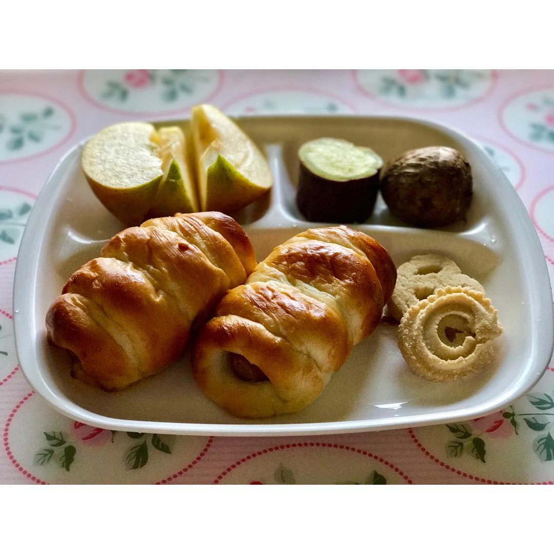 香肠面包,曲奇,苹果,地瓜,芋头