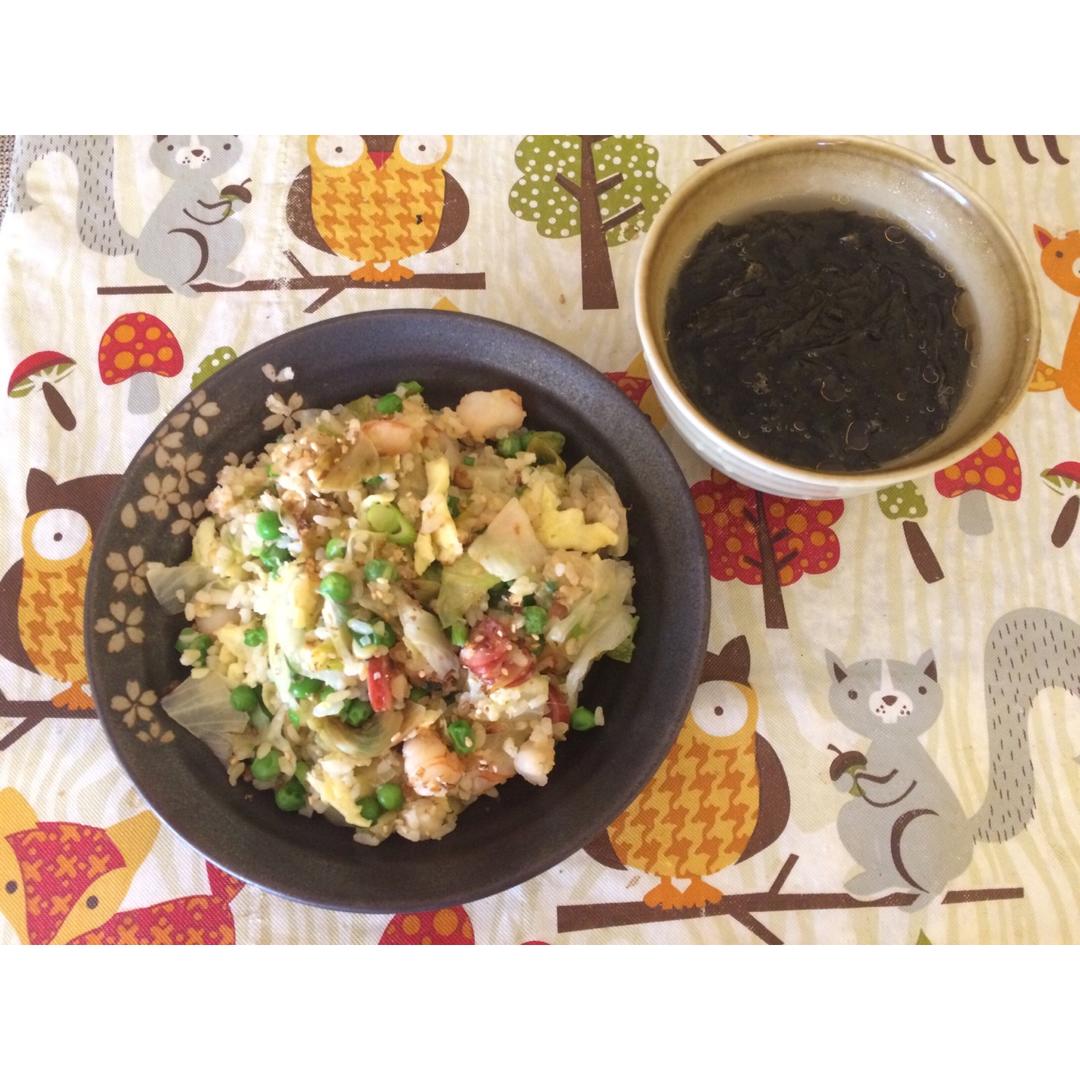 一个人的午饭~#深夜食堂 生菜炒饭~每次炒饭加的菜都比饭多~紫菜汤~