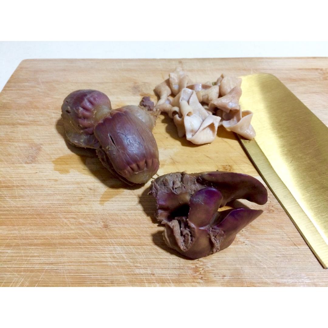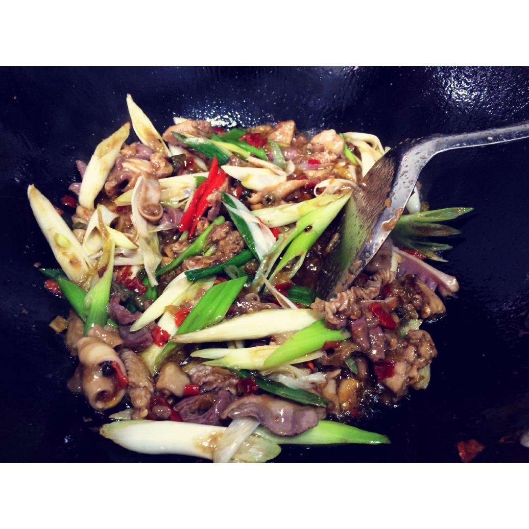 自己老家养的鸭子吃的放心,所以把所有鸭内脏留着单独炒了一个菜。鸭胗,鸭肠,鸭肝,鸭心和大...