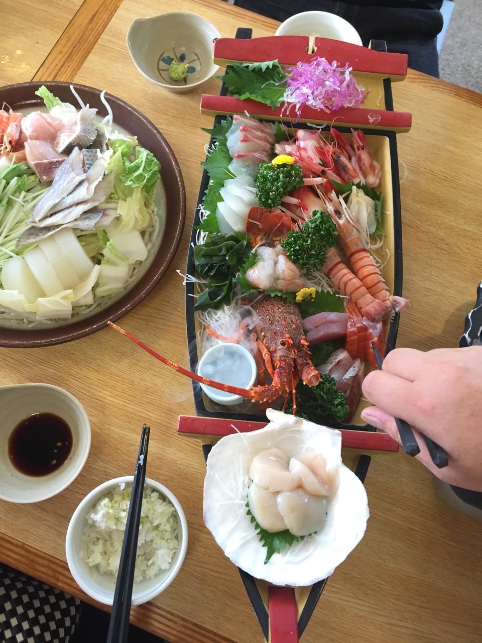 龙虾刺身、海鲜小火锅