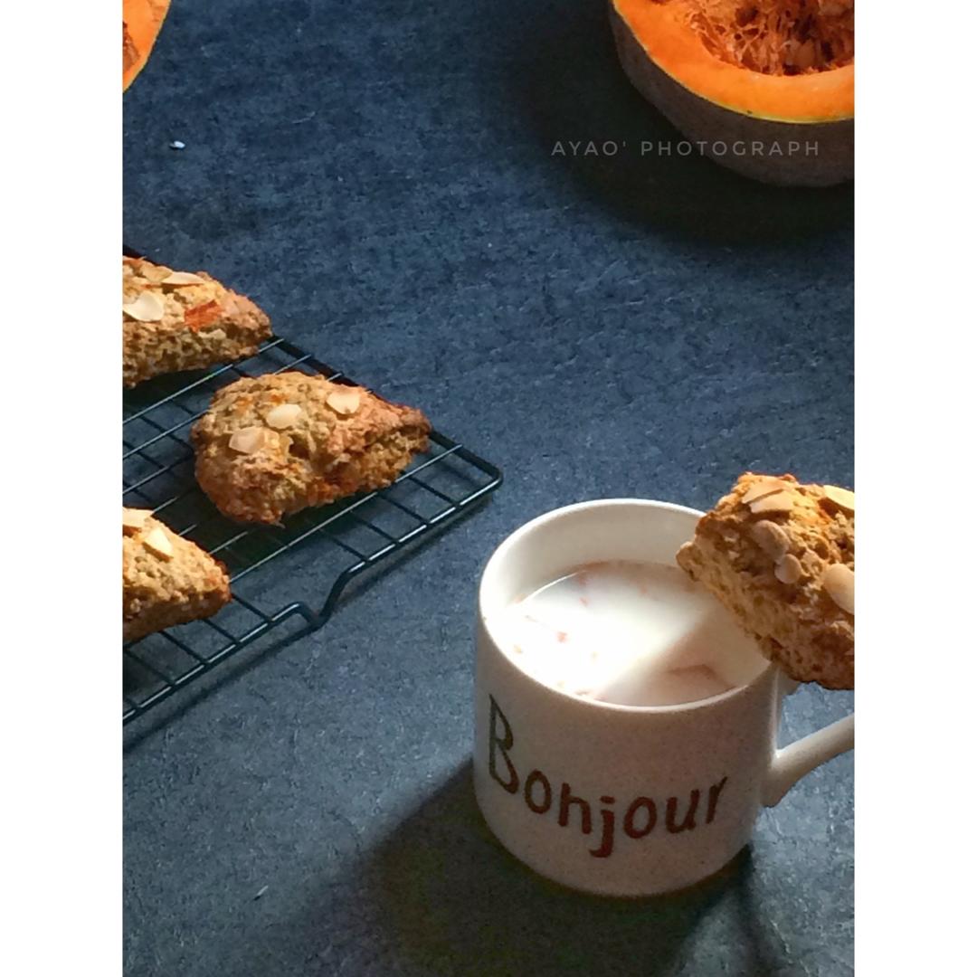 我整了个南瓜司康,可是我的南瓜没成泥也,然后就不能和卖家秀辣么金黄金黄辣😂