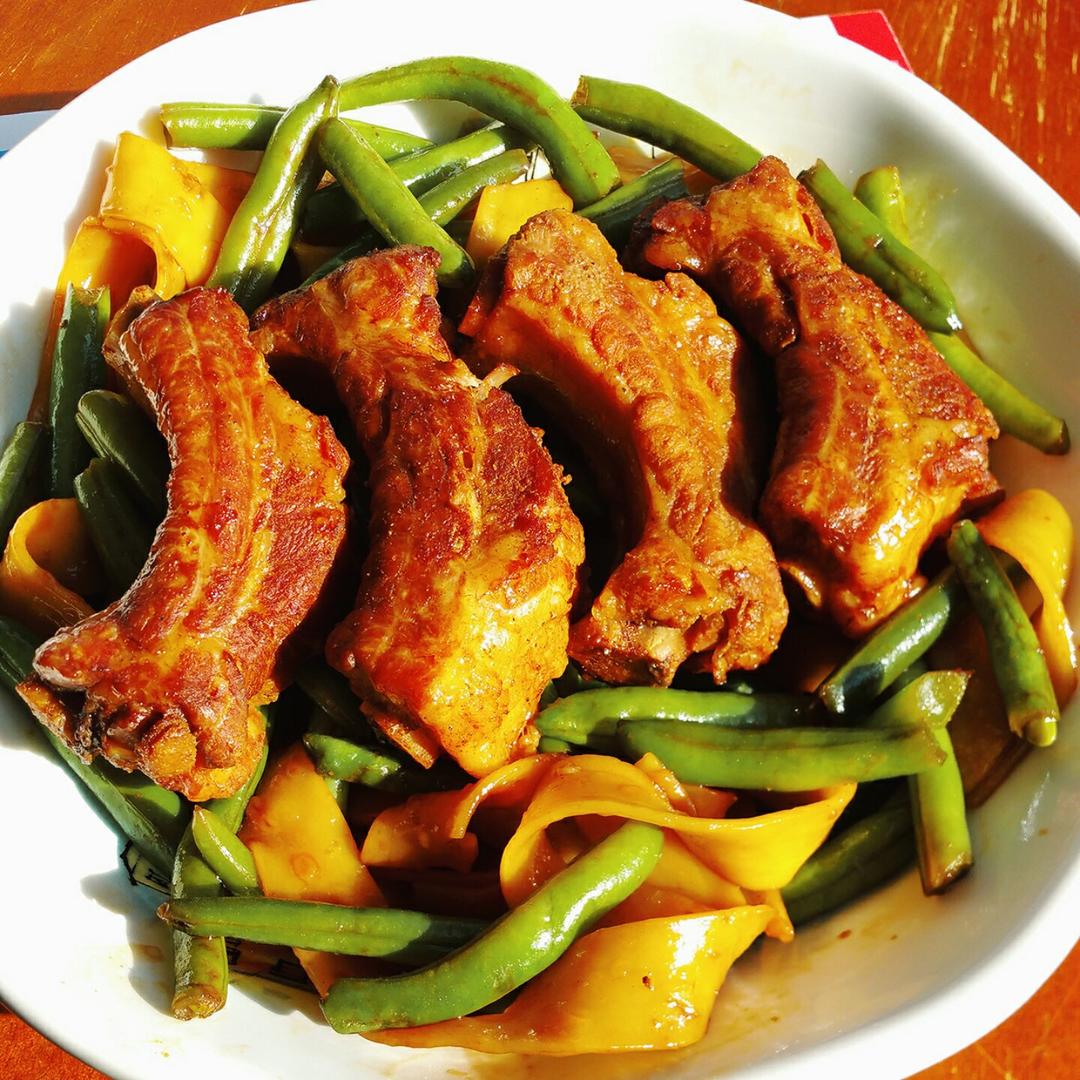 饼星人的午餐,饼星人的午餐,饼星人的午餐。排骨豆角焖面。这么棒的排骨,买一扇送两扇,二十...