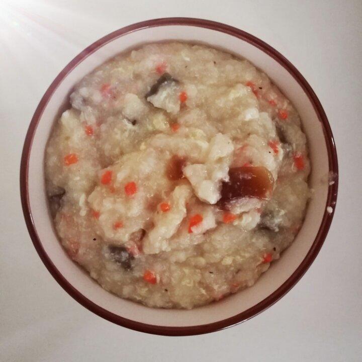 皮蛋瘦肉粥,加了胡萝卜调色