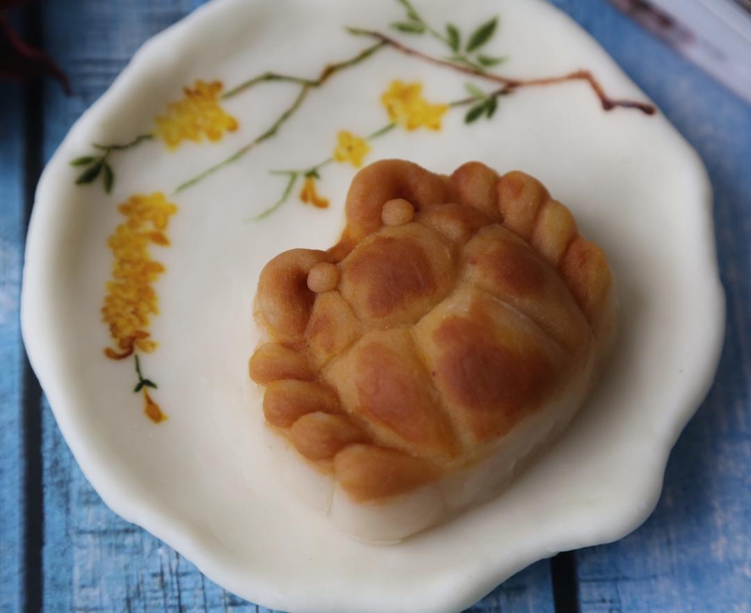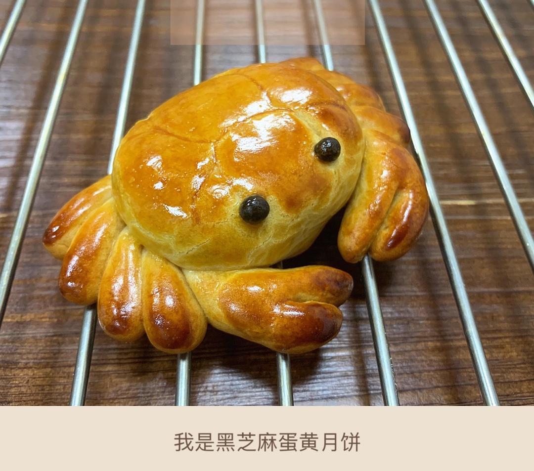 螃蟹月饼,好可爱呀,是黑芝麻蛋黄馅的。