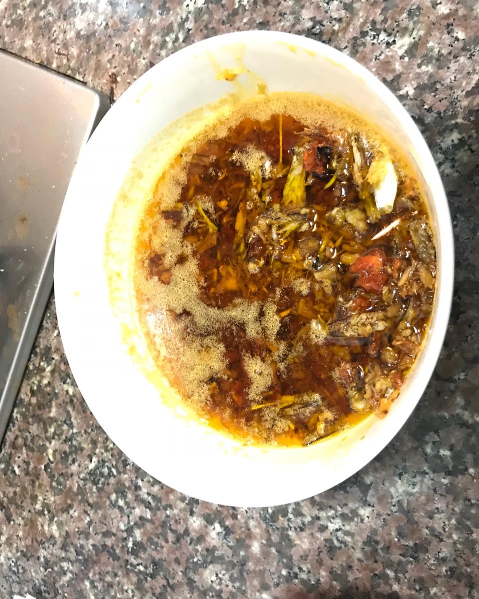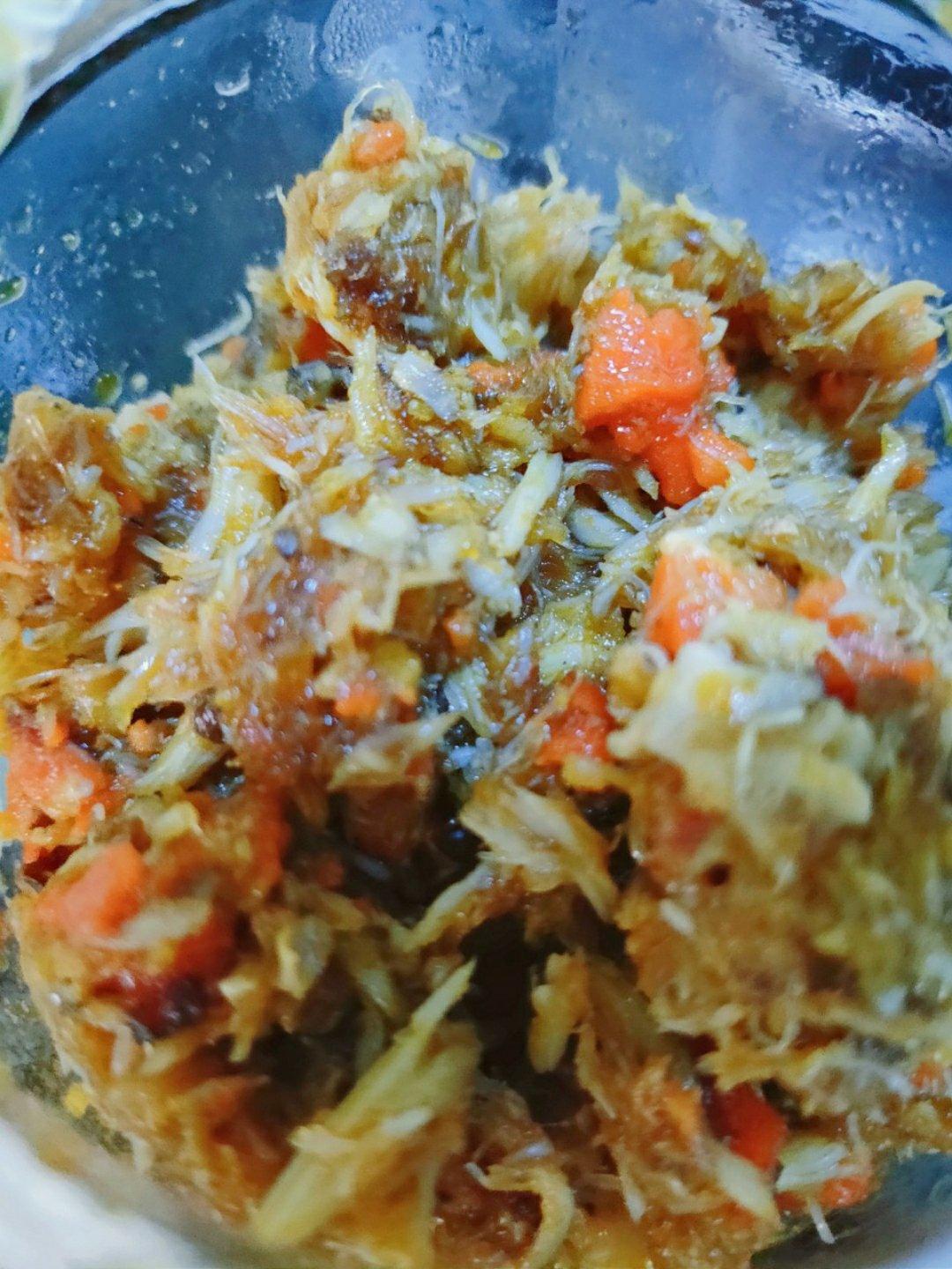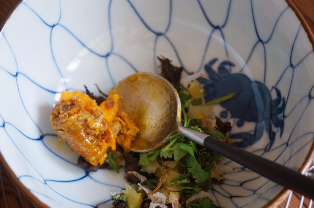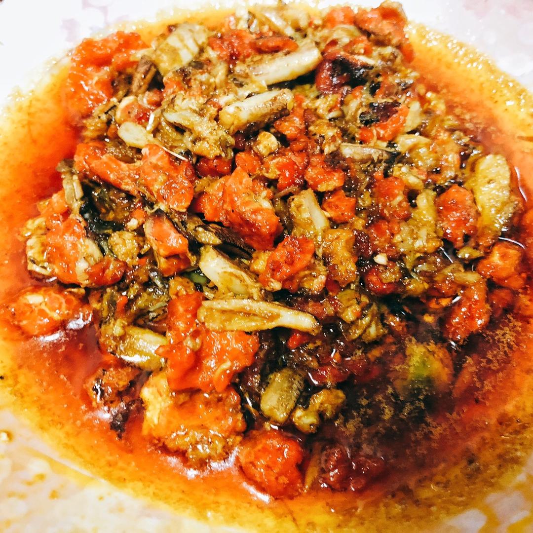 蟹黄酱~“改良版”秃黄油,本来应该是纯蟹黄的,自家吃就不讲究了,用的蟹黄+蟹柳…加了一丢丢笋丁,六只蟹就这么...