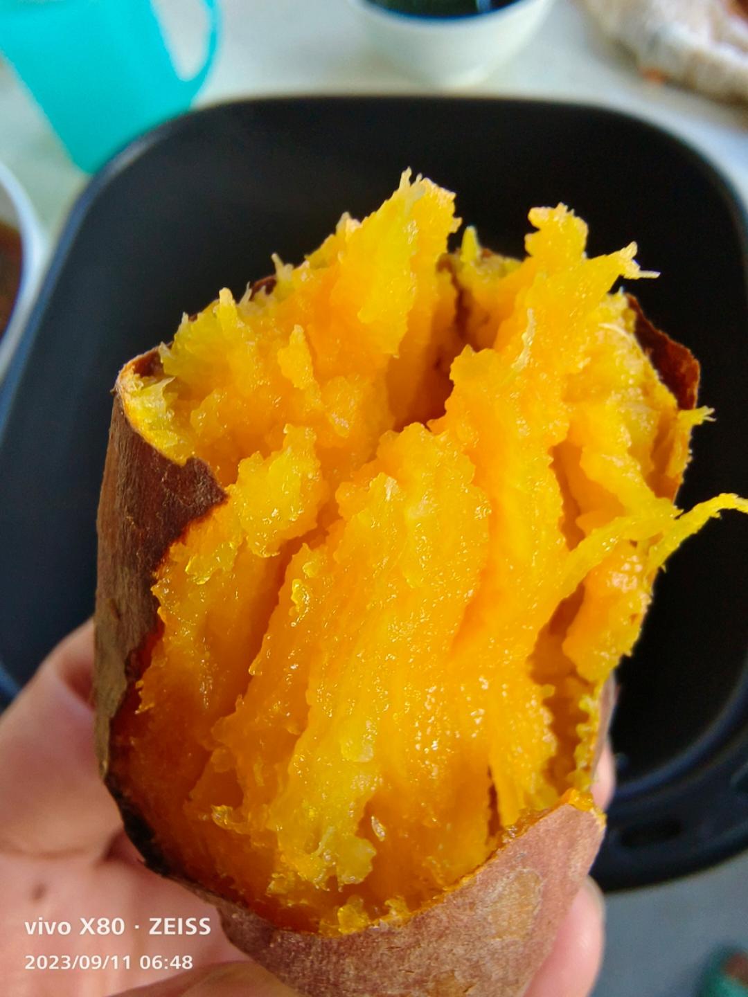 烤个🍠778 很好吃 就是没有流🍯,空气炸锅烤红薯还是很方便的,点个赞😃