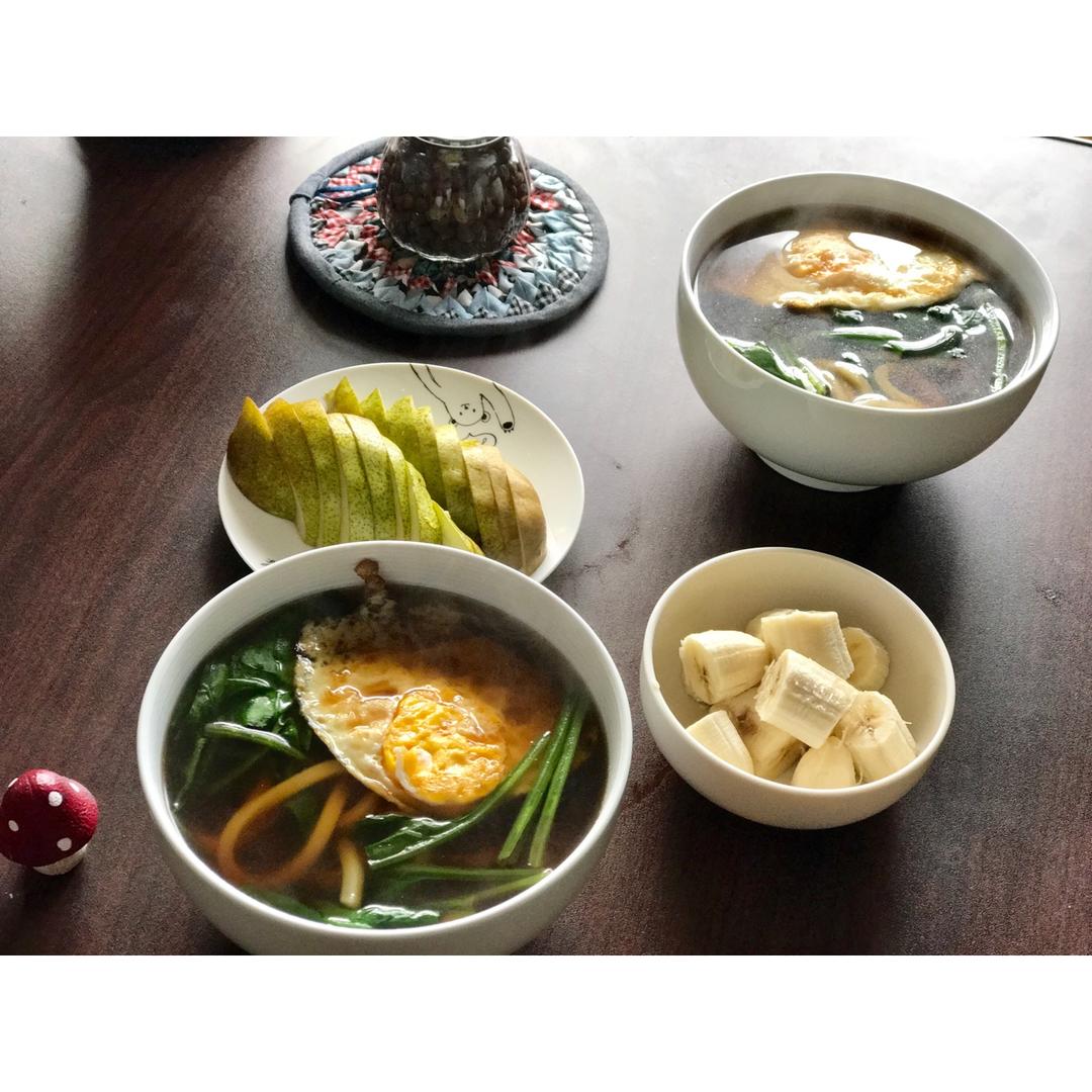 乌冬面,水果。