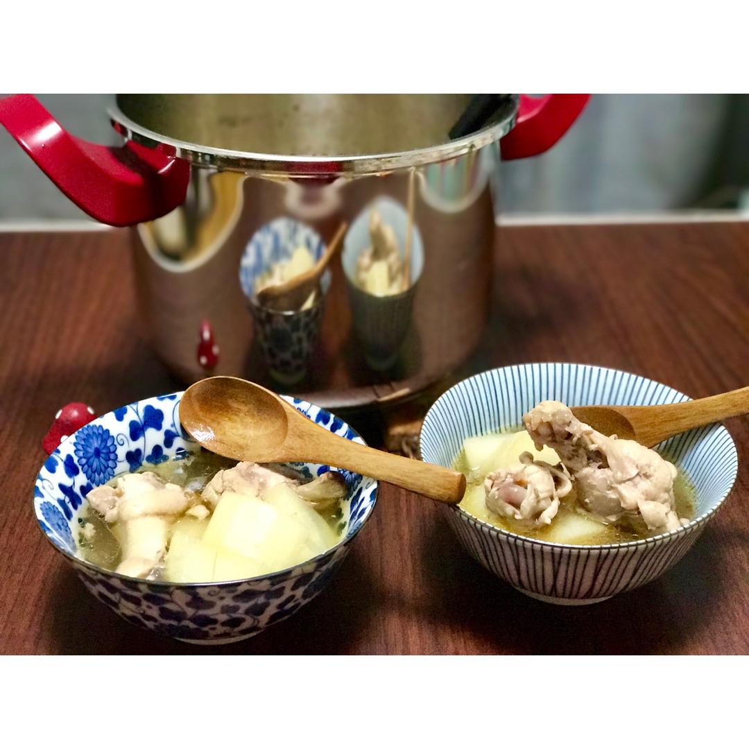 高压锅炖萝卜鸡腿汤,今晚只有这一个菜。一边看电影,一边各抱各碗:D