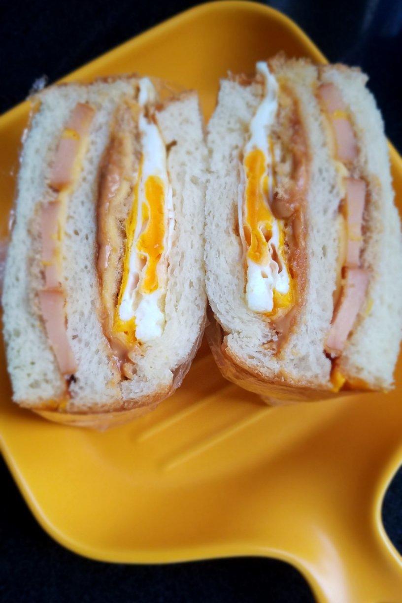 鸡蛋肉松三明治 烤红薯 牛奶