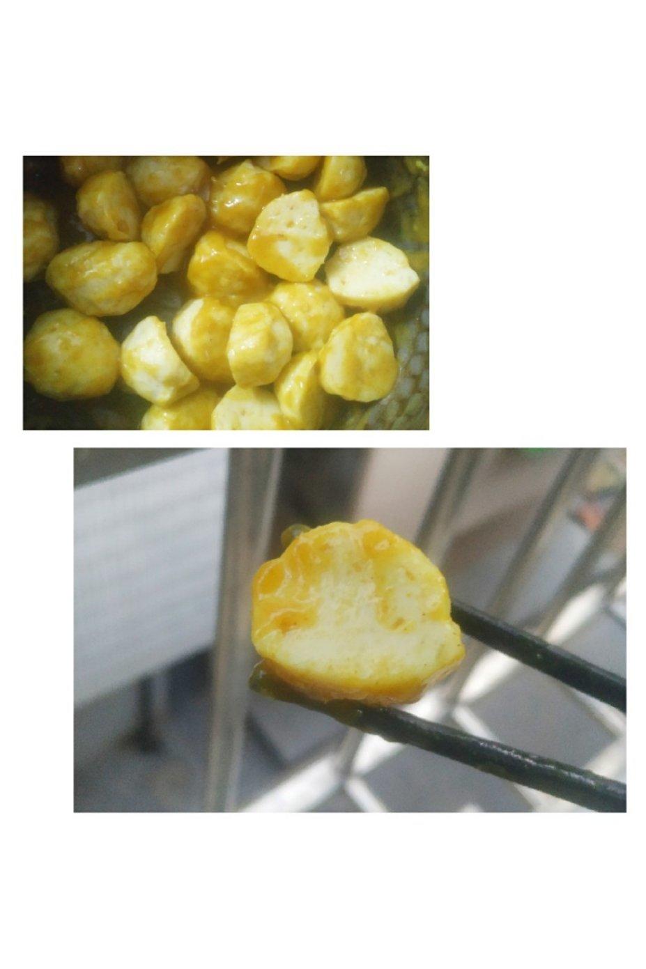 加了一小块咖喱块做成咖喱鱼丸😀😀