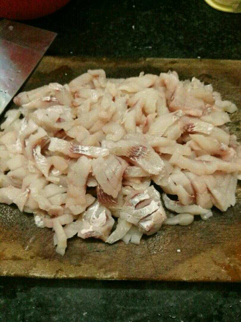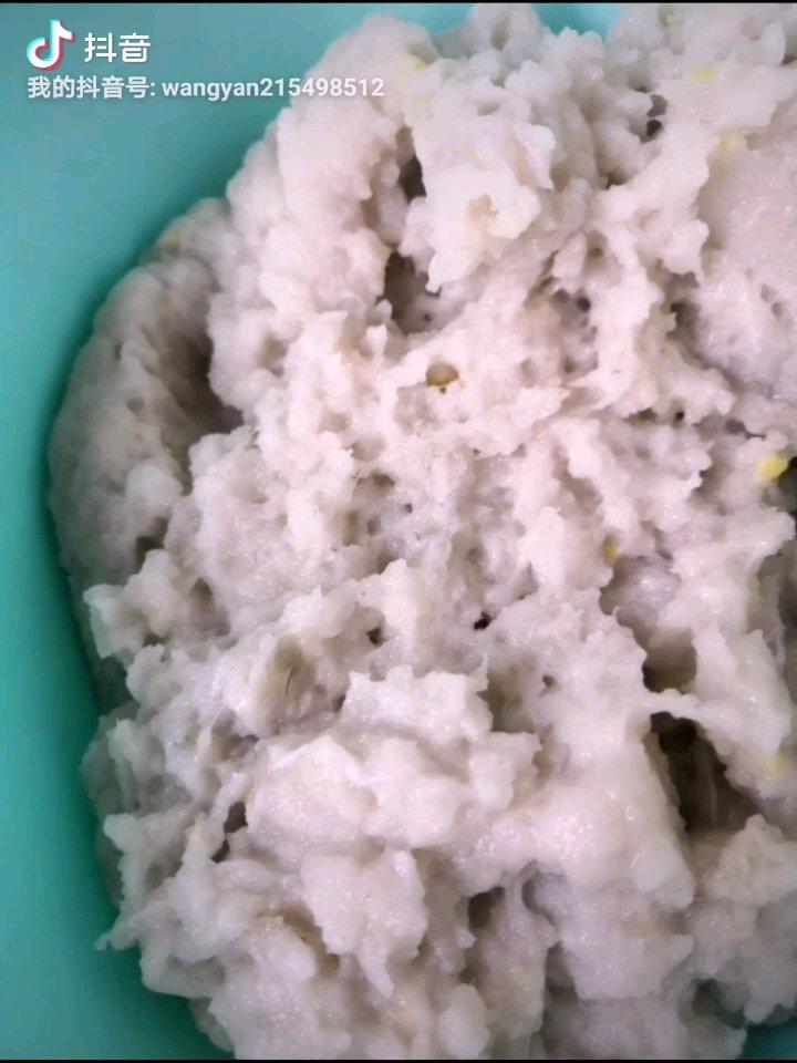 买了四斤多的花鲢,回家除去鱼头和鱼排,鱼肉切片,剔大鱼骨,用绞肉机很快打好肉泥,放在盆里用手打馅,很快就粘稠状了,到做好...