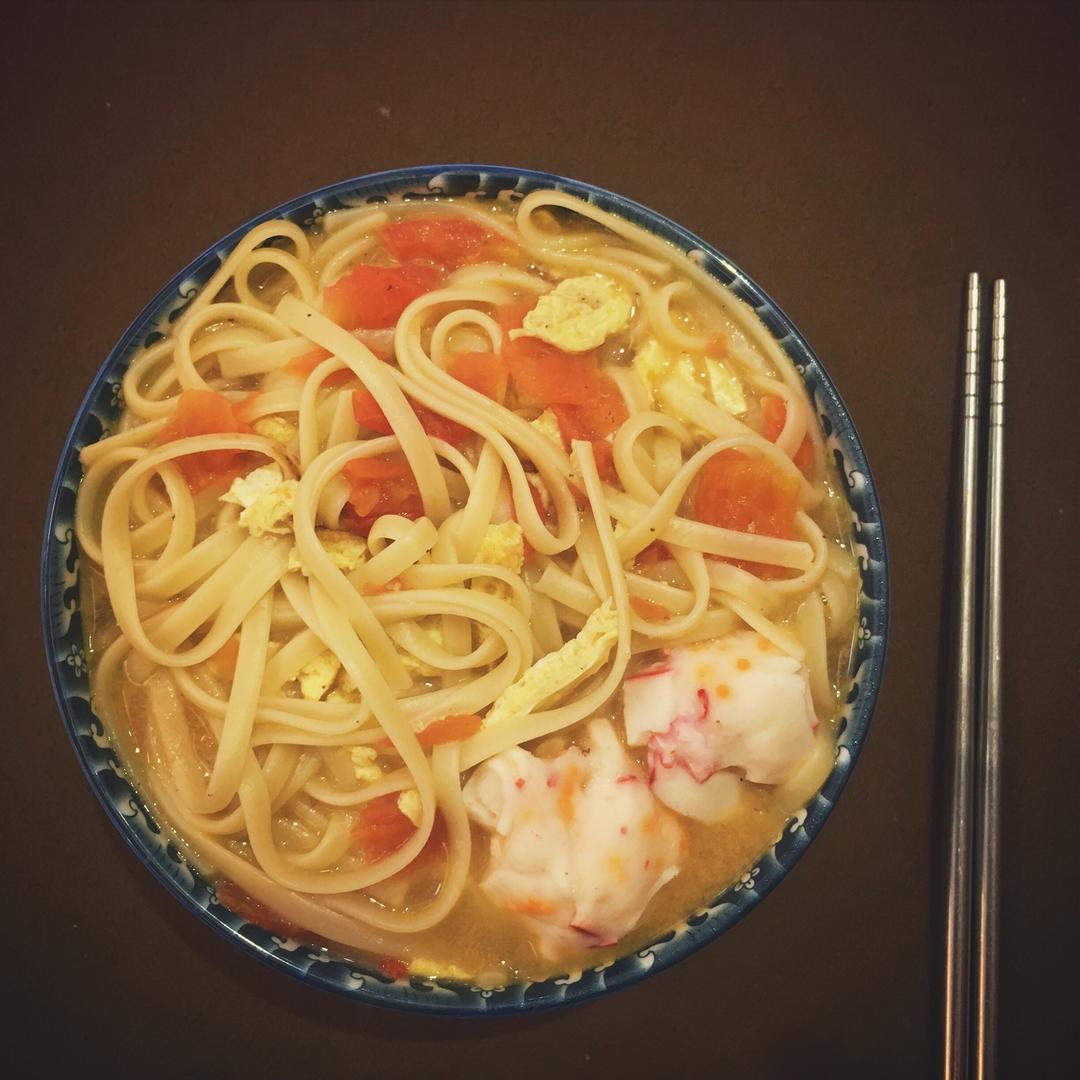 「番茄鸡蛋龙虾丸子面」
