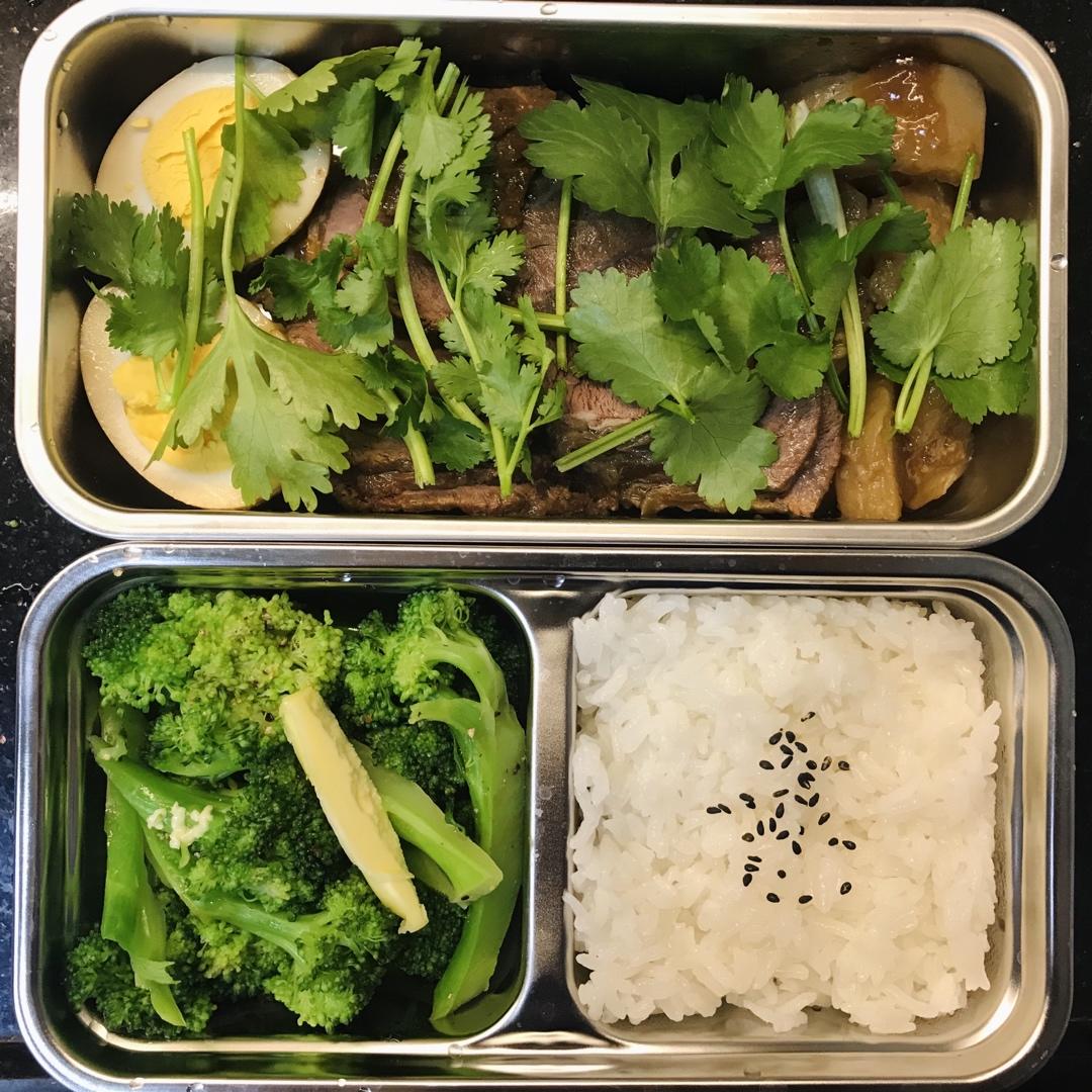 卤牛肉卤蛋+黄油西兰花+白米饭