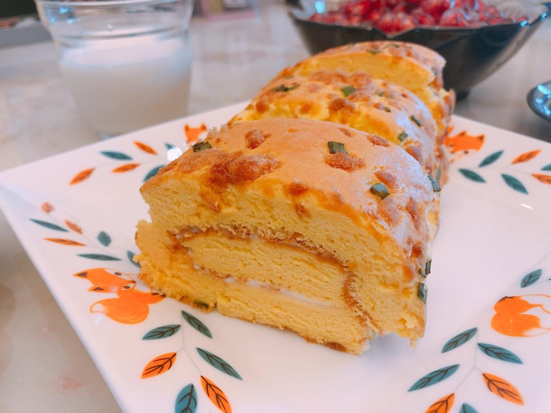 以前常做奶油卷,最近换换口味做肉松卷,葱油味真的好棒!